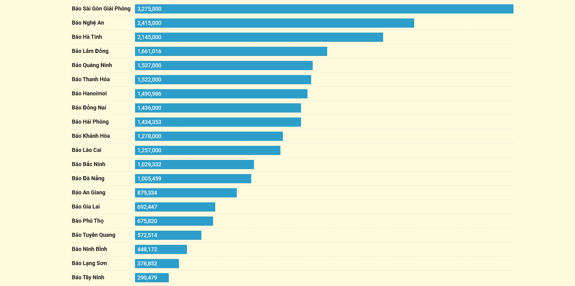 TOP 32 báo Đảng địa phương tháng 03/2025 theo lượt truy cập